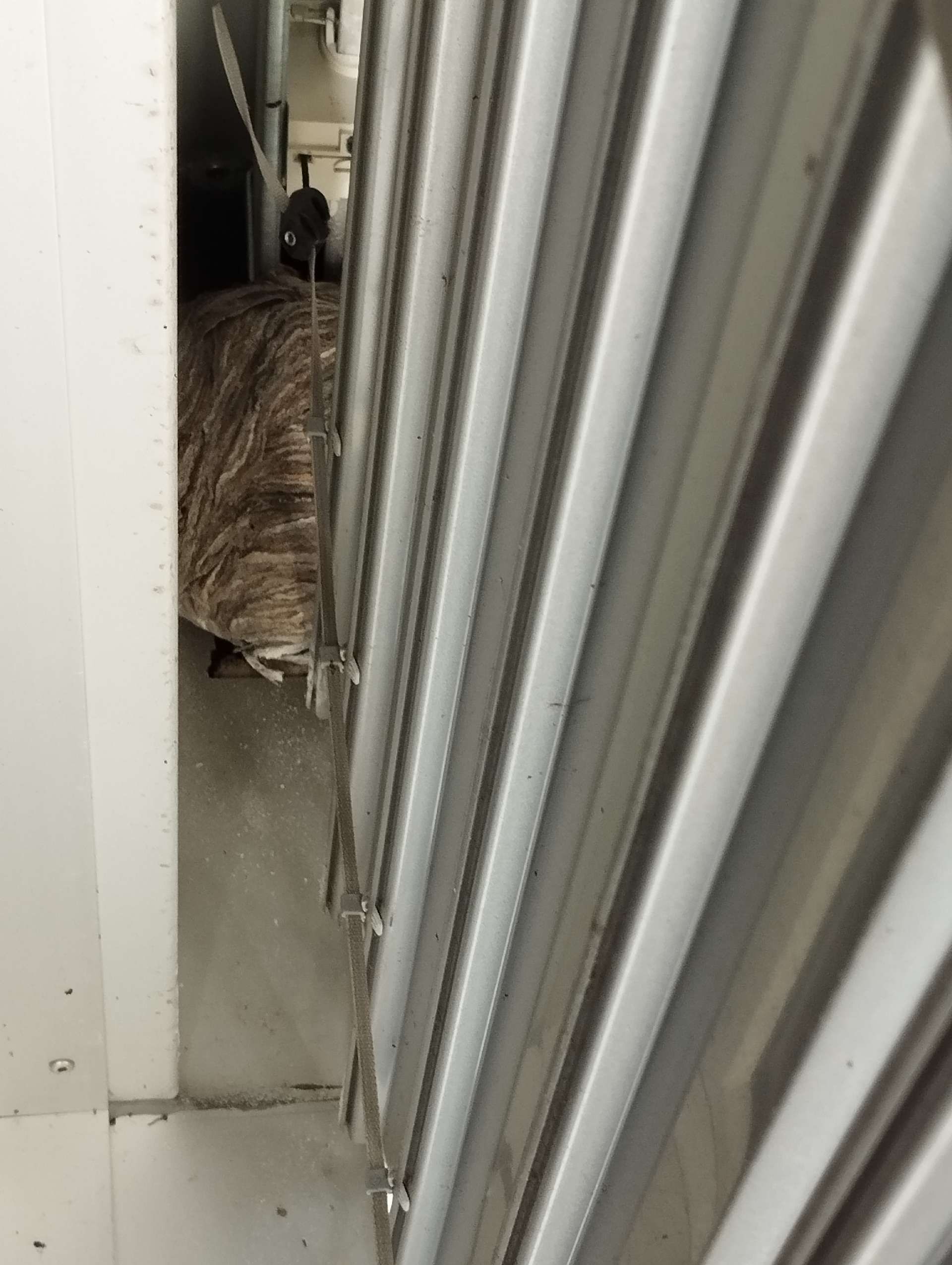 When you find a wasp nest located inside a roller shutter box, you must use caution as the angry wasps may attack if provoked. The most efficient and safest method to remove the nest is to consult with a certified pest controller.